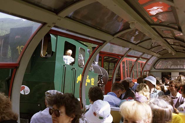 Eine neue Generation von Dampflokomotiven: Die 1992 gebaute, ölgefeuerte HG 2/3 12 wurde hier auf einer Leerfahrt auf der Planalp im Juli 1992 gesehen.