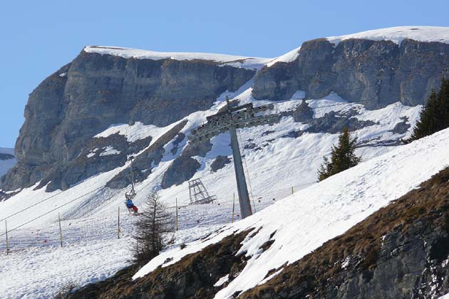 Bei der Talstation der Sesselbahn La Tsa am 24. Februar 2008.