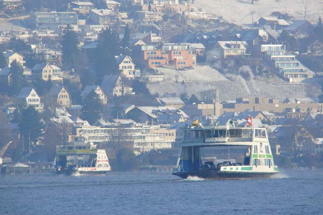 Die Fähren "Burg" und "Horgen" begegnen sich auf dem See - 20. Dezember 2009.