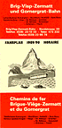 Brig-Visp-Zermatt / Gornergrat / Furka-Oberalp und Schöllenen-Bahn Schweiz / Chemins de fer Brigue-Viège-Zermatt / du Gornergrat / Furka-Oberalp et des Schoellenen Sommerfahrplan / Horaire d'Été 1948 6 Seiten / pages, 29,6 x 21 cm, gefaltet auf / plié 9,9 x 21 cm Faltblatt / dépliant gedruckt von / imprimé par |