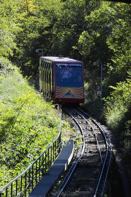 Above the Pazzallo changing and midway station on August 8, 2005. Here you see the cable leaving the upper track in direction to the lower half-section.