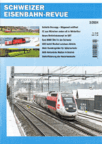 Walter von Andrian, Philipp Wyss, Sebastian Schrader, Jiri Hönes und Ralph Pringsheim (Redaktion) Schweizer Eisenbahn-Revue 2/2024 48 Seiten (nummeriert 50-95), 79 Abbildungen meist vierfarbig, 21 x 29,7 cm (mit dem Kapitel "Verbindungskurve Brunegg - Mägenwil eröffnet": 6 Seiten, 11 Abbildungen) Broschüre (geheftet) ISSN 1022-7113 erschienen bei |