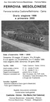 Ass. Amici della Ferrovia Mesolcinese (FM) / RhB Ferrovia Mesolcinese Orario stagione 1999 et primavera 2000 8 pagine / Seiten, 2 illustrazioni in bianco e nero / Abbildungen s/w, 42 x 21 cm, pieghevole / gefaltet auf 10,5 x 21 cm prospetto piegato / Faltblatt pubblicato della / herausgegeben von Ass. Amici della Ferrovia Mesolcinese (FM Ferrovia Mesolcinese), Soazza, 1999 |