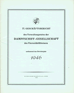 DGV 77. Geschäftsbericht des Verwaltungsrates der Dampfschiff-Gesellschaft des Vierwaldstättersees umfassend das Berichtsjahr 1946 24 Seiten, 21,4 x 27,5 cm Broschüre (geheftet) herausgegeben von der |