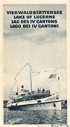 DGV Vierwaldstättersee Luzern Dampfschiffahrt Lake of Lucerne Navigation Lac des Quatre-Cantons Navigation Lago dei Quattro-Cantoni Navigazione topographische Karte des Vierwaldstättersees vierfarbig / topographic map of Lake Lucerne in four-color printing / carte topographique du Lac des Quatre-Cantons en couleurs / carta topografica del Lago dei Quattro-Cantoni a quattro colori, Maßstab / scale / échelle / scala 1 : 75 000, 59,7 x 53,7 cm, gefaltet auf / folded / pliée / pieghevole 10 x 18 cm Rückseite mit 16 Abbildungen (davon 6 mit Schiffen) / reverse with 16 illustrations (from it 6 with ships) / le verso avec 16 illustrations (dont 6 avec des bateaux) / il dorso con 16 illustrazioni (da questo 6 con battelli) herausgegeben von der / published by / publiée par / pubblicato dalla |