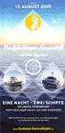 Zugersee Schifffahrt Dancing Tanzschiff & PartySchlager Tanzschiff Eine Nacht - zwei Schiffe - 17. August 2019 4 Seiten, 5 Abbildungen vierfarbig, 21 x 21 cm, gefaltet auf 10,5 x 21 cm Faltblatt herausgegeben u. a. von der |