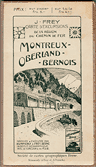 J. Frey Carte d'excursions de la région du Chemin de fer Montreux - Oberland-Bernois / Spezialkarte des Exkursionsgebietes der Montreux - Berner-Oberlandbahn Innentitel: Région du Chemin de fer Montreux-Oberland Bernois et des Chemins de fer de la Gruyère / Exkursionsgebiet der Montreux-Berner Oberland-Bahn und der Greyerzerbahnen carte topographique en couleurs / topographische Karte mehrfarbig, échelle 1 : 75 000 / Maßstab 1 : 75 000, sur toile / auf Leinwand 91,8 x 69,4 cm, plié / gefaltet auf 13,5 x 23,4 cm légende en allemand et français / Legende in Deutsch und Französisch Faltblatt / dépliant (la carte était également disponible sur papier / die Karte war auch auf Papier erhätlich) édité par la / erschienen bei / |