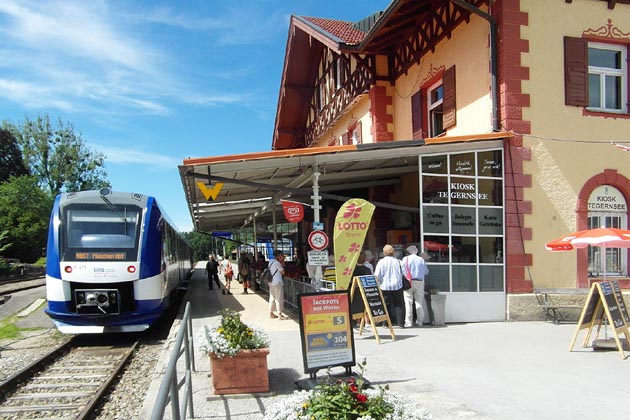 RB 57 nach München Hbf wartet am 14. Juli 2022 im Bahnhof Tegernsee auf seine Abfahrt.